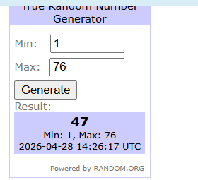 Υπήρχαν 76 στοιχεία στη λίστα σας. Εδώ είναι με τυχαία σειρά: