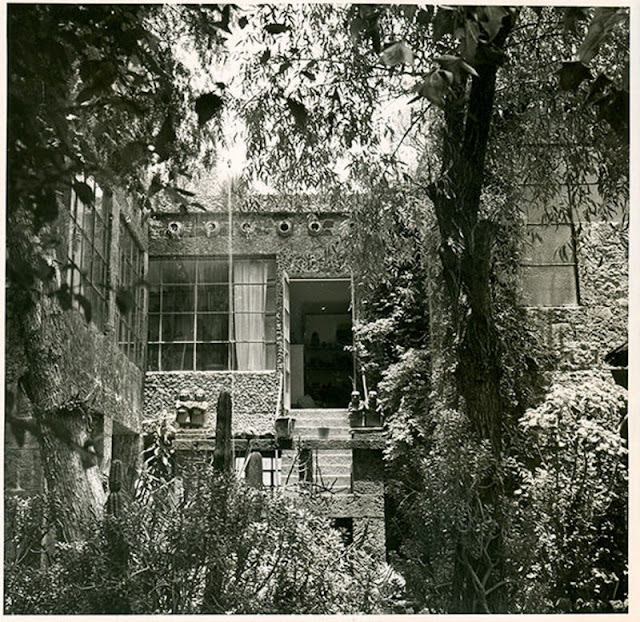 Στο Μπλε Σπίτι, που ο πατέρας της Κάλο μεταβίβασε στην κόρη του και τον Ριβέρα το 1929, σε κάθε γωνιά αντικατοπτρίζεται η αγάπη του ζευγαριού για τη μεξικανική φύση, την τέχνη και την αρχιτεκτονική των αυτόχθονων πληθυσμών του Μεξικού. Ενώ το πατρικό της Φρίντα είχε νεοκλασικές λεπτομέρειες-αναφορές στην ευρωπαϊκή αισθητική, το ζευγάρι τις αφαίρεσε μετά τη μετακόμισή του και το ίδιο έκανε και με τα μη γηγενή φυτά του κήπου, αντικαθιστώντας τα με είδη πιο ταιριαστικά προς το μεξικανικό τοπίο και κλίμα, όπως κάκτους και γιούκες. Σε φωτογραφίες της Κάλο από τα 30s και 40s, που είχε τραβήξει ο εραστής της Nickolas Muray, τη βλέπουμε επίσης ανάμεσα στα ζώα, πολλά από εκείνα εξωτικά, που φιλοξενούσε στον κήπο: μαϊμούδεςελάφια, αετούς, παπαγάλους, γαλοπούλες και σκύλους, κυκλοφορούσαν ανάμεσα σε παχύφυτα και ροδιές.