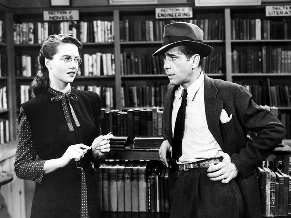 «Πάθος και Αίμα» (1946) – Στο Geiger’s Rare Books η Ντόροθι Μαλόουν και ο Χάμφρεϊ Μπόγκαρτ ξεστομίζουν μερικές από τις απολαυστικές, γεμάτες υπονοούμενα, ατάκες που έγραψε ο Ρέιμοντ Τσάντλερ, μπροστά από ένα υπέροχο σκηνικό που αποτελεί παράλληλα και κομβικό σημείο για την πλοκή της ταινίας.