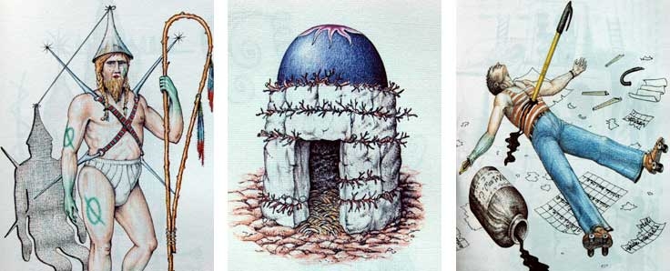 Στοιχεία του σημερινού κόσμου είναι ορατά, αλλά τους δίνεται σχεδόν πάντα μία σουρεαλιστικό μορφή όπως για παράδειγμα πλωτά λουλούδια, μια φλούδα της μπανάνας που περιέχει χάπια, ένα παράξενο αυτοκίνητο καλυμμένο από μύγες, ρούχα που θα φαίνονται παράξενο ακόμη και στη δεκαετία του 1970, έναν άνδρα που φοράει ρόλερ – με τη μύτη μίας πένας αντί για χέρι – ένα στήθος μαχαιρωμένο με στυλό και πολλά δίποδα πλάσματα με ανθρώπινα πόδια που συνδέονται με διάφορα.. τρελά πράγματα!